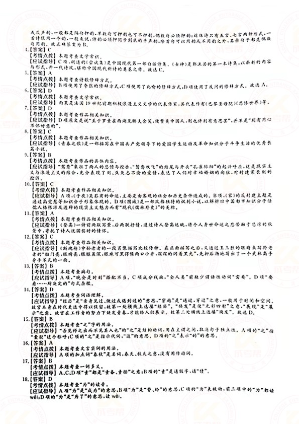 2021年重庆成人高考专升本大学语文考试真题及答案